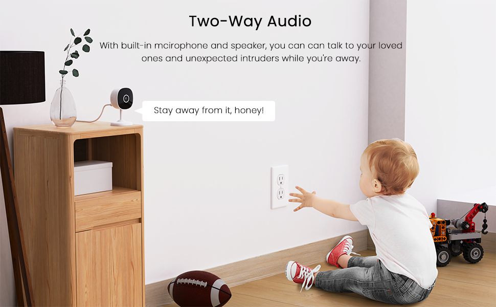 Galayou smart home camera is equipped with a built-in speaker and mcirophone to allow you communicating with your loved ones. You can keep an eye on baby, pet, and home when you are away, just use the convenient phone app to control camera, listen, and talk from anywhere.