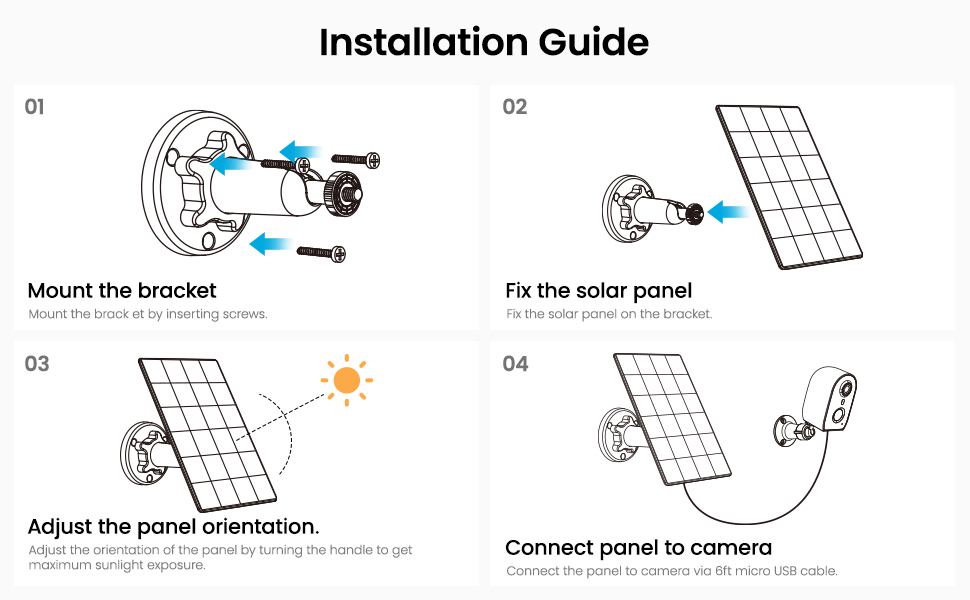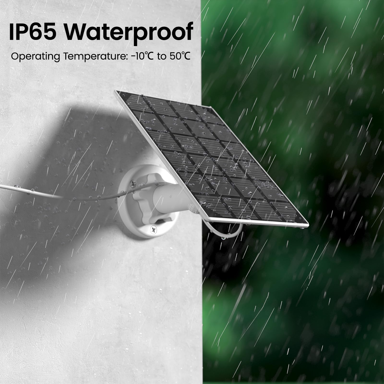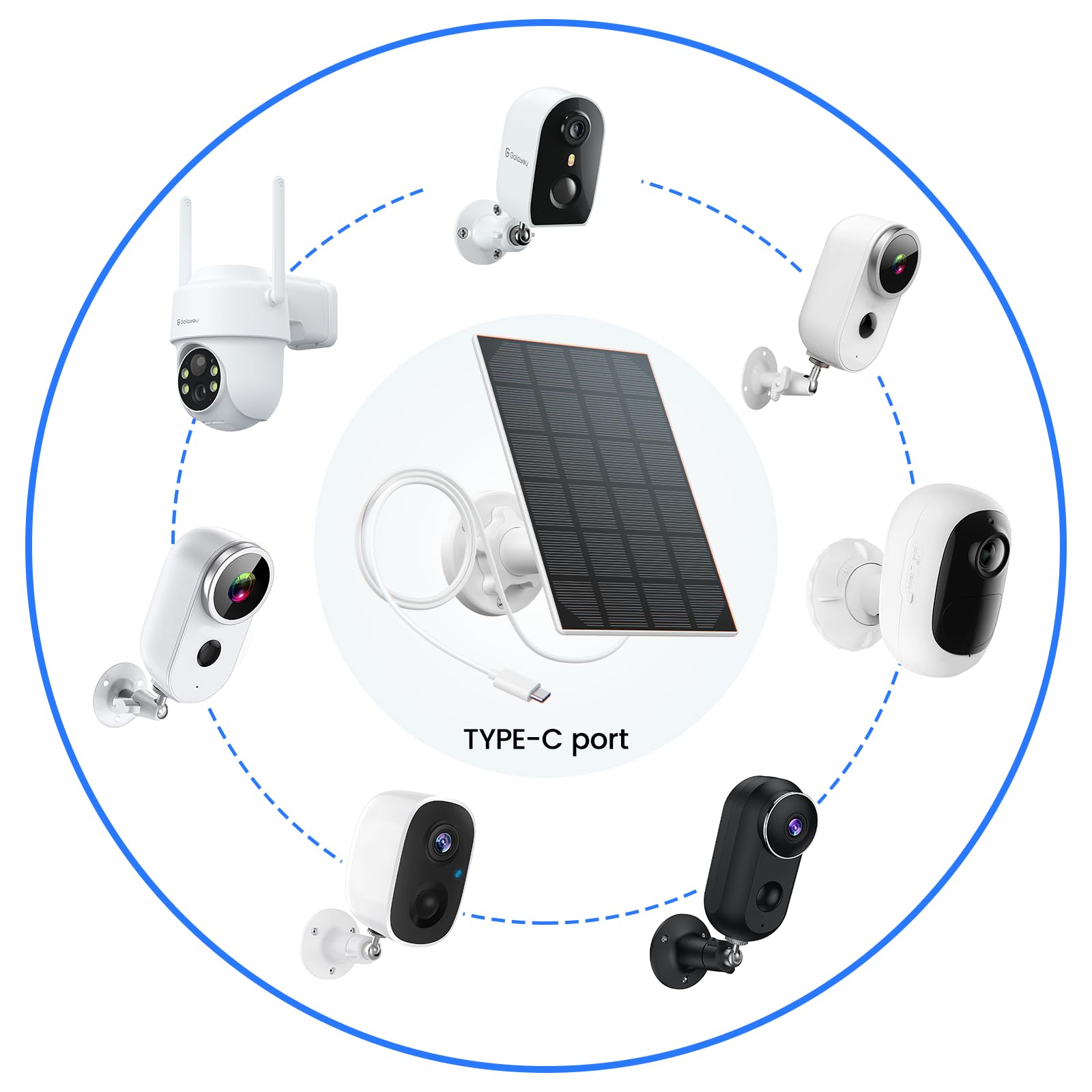 This solar panel has a Type-C cable. The high quality solar panel is compatible with all outdoor surveillance cameras battery.
